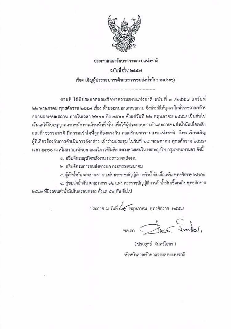 เรื่อง เชิญผู้ประกอบการค้าและการขนส่งน้ำมันร่วมประชุม