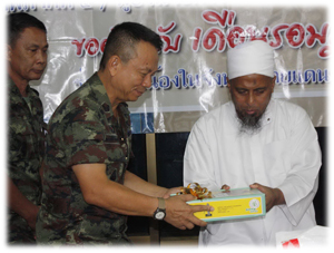 บรรยายภาพ : พล.ท.อุดมชัย ธรรมสาโรรัชต์ แม่ทัพภาคที่ 4 เข้าเยี่ยมพบปะผู้นำศาสนา พร้อมมอบอินทผลัมและสิ่งของเพื่อแสดงความปรารถนาดีต้อนรับเดือนรอมฎอน ที่ศูนย์ดะวะห์ (มาร์กัสยะลา) ต.สะเตงนอก อ.เมือง จ.ยะลา (ภาพโดย อะหมัด รามันห์สิริวงศ์)