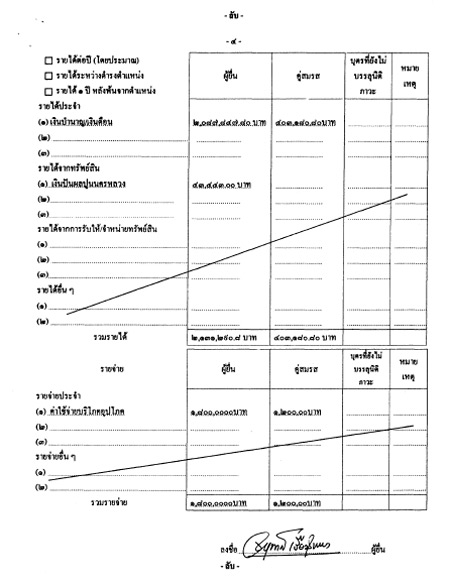 ทั้งนี้ เป็นที่น่าสังเกตว่า ในการแจ้งบัญชีแสดงรายการทรัพย์สินและหนี้สินทุกครั้ง นายจารุพงศ์ ไม่ได้ระบุว่า นางสุพัตรา มีรายได้จากค่าเช่าห้องพักดังกล่าวแต่อย่างใด