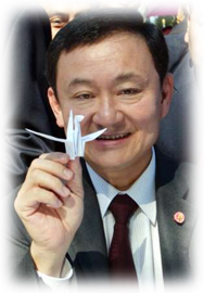 4 พ.ต.ท.ทักษิณ ชินวัตร อดีตนายกรัฐมนตรี ขณะโชว์นกกระดาษ สัญลักษณ์สันติภาพที่ชายแดนใต้ ซึ่งมีการรณรงค์กันช่วงเขาเป็นรัฐบาล