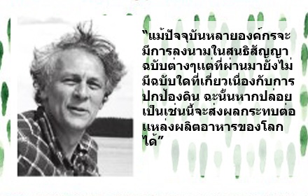 กุนนาร์ กล่าวตอนหนึ่งถึงเทคโนโลยีสมัยใหม่นั้น ทำให้เรามีอาหารและสุขภาพดี ดังนั้นปัญหาใหญ่มิได้ขึ้นอยู่กับความหิวโหย แต่กลับเป็นความหลากหลายทางชีวภาพที่หดหายไป เพราะมนุษย์ทำลายระบบของธรรมชาติ ด้วยการแย่งชิงทรัพยากรมาจากพืชและสัตว์ ทำให้วงจรธรรมชาติใหญ่เปลี่ยนแปลงไป