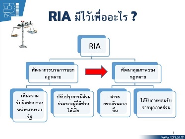 (3)มีหน่วยงานกลางที่มีความรู้ความเชี่ยวชาญเกี่ยวกับ RIA เพื่อทำหน้าที่ในการ กำหนดวิธีการจัดทำรายงานที่เป็นแบบฟอร์มสำเร็จเพื่อให้รายงานที่หน่วยงานของรัฐจัดทำขึ้นเป็นมาตรฐานเดียวกัน และ ตรวจสอบความครบถ้วนสมบูรณ์ของรายงาน เพื่อให้การรับรองรายงาน