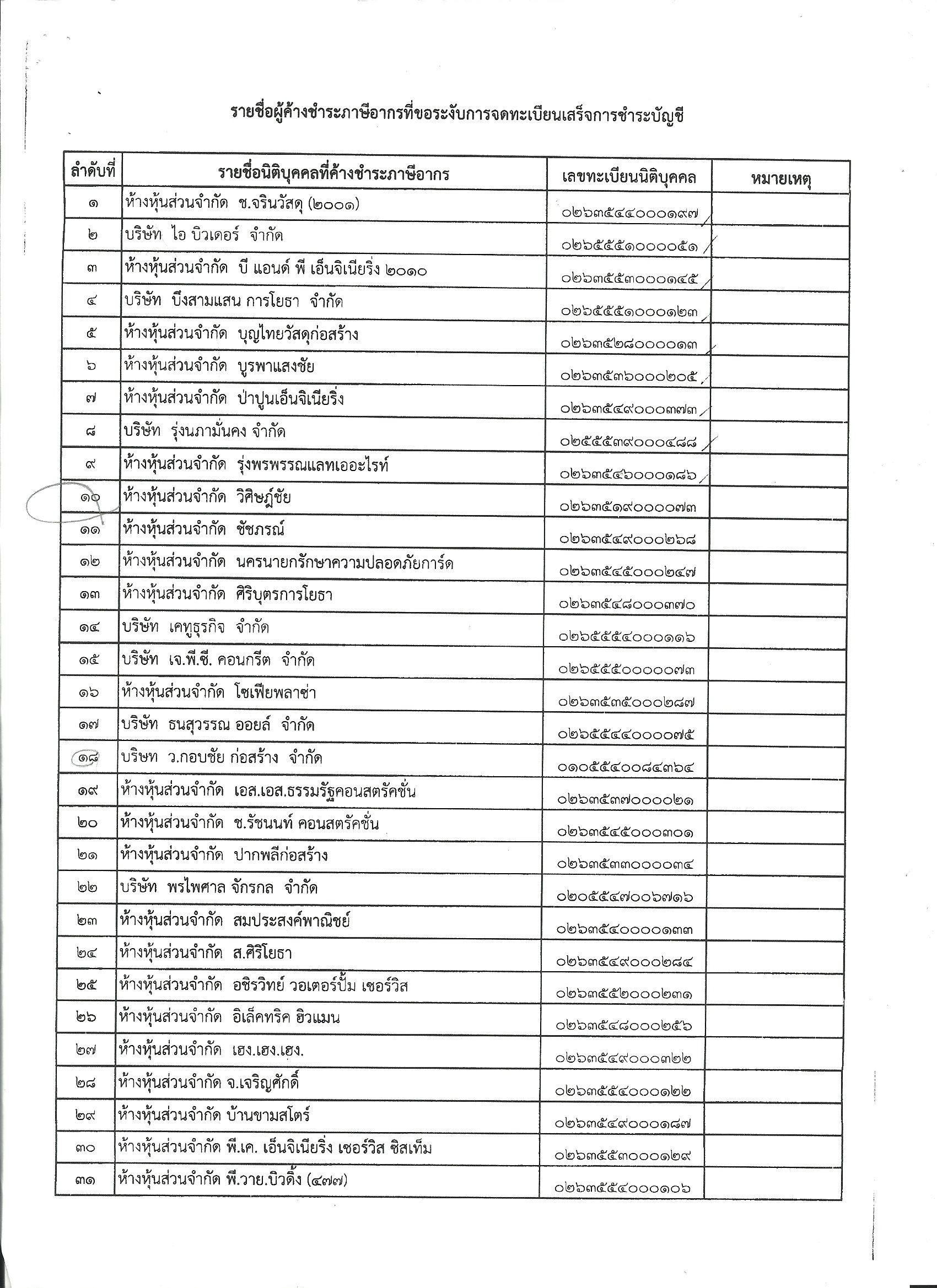 เปิดรายชื่อเอกชน 30 รายค้างชำระภาษีพร้อม “หจก.เสี่ยแหมะ”ถูก“สรรพากร”ส่งหนังสือไล่บี้ห้ามปิดกิจการ พบจดทะเบียนเลิกแล้ว 3 ราย- อีก 4 แห่งถูกศาลสั่งล้มละลาย ส่วนใหญ่รับเหมา