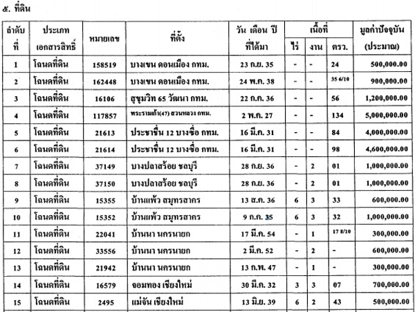ทั้งหมดนี้ คือ บรรดาทรัพย์สินที่ดินของ 5 รัฐมนตรี ที่มีส่วนเกี่ยวพันกับโครงการรับจำนำข้าวตามความเห็นของคณะกรรมการ ป.ป.ช.