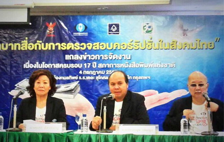 จัดงานครบรอบ 17 ปี สภาการหนังสือพิมพ์แห่งชาติ 4 ก.ค. 57 ชูประเด็นบทบาทสื่อกับการตรวจสอบคอร์รัปชั่น ‘กล้านรงค์’ ยอมรับที่ผ่านมาไทยประสบปัญหาสูง หนุนสื่อป้องกัน-ปราบปราม เน้นข่าวสืบสวนลงลึกข้อมูล