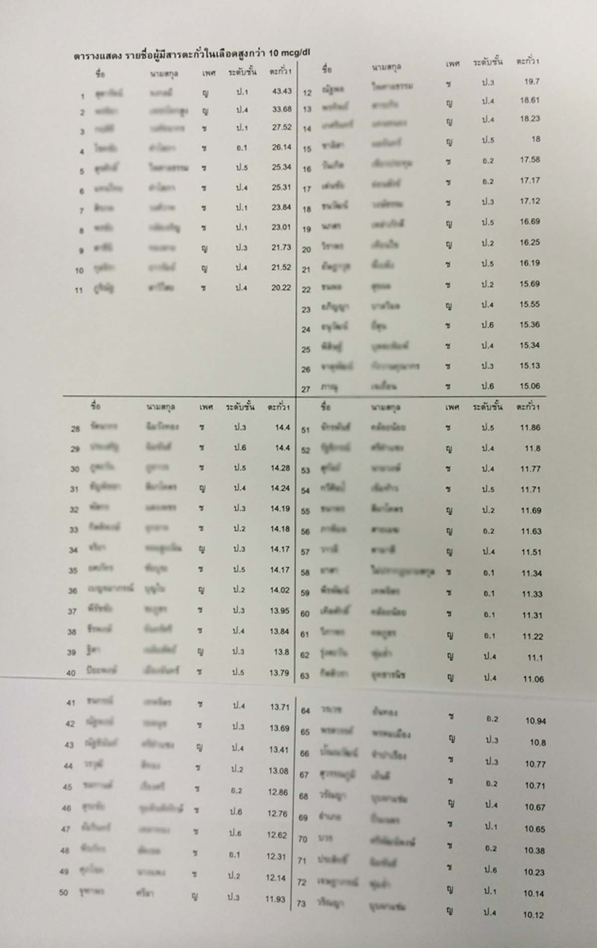 “เพิ่งทราบค่ะ ว่าในตัวน้องมีสารตะกั่วเพิ่มมากขึ้น ก่อนหน้านี้รู้แค่ว่ามีสารตะกั่ว เราย้ายบ้านออกมาแล้ว ทำไมสารตะกั่วยังไม่ลดแต่กลับเพิ่มขึ้นอีก” นางประภัสสร ภาต่อ น้าสาวของเด็กหญิงคนหนึ่ง(นามสมมติ) แสดงความกังวลหลังรับทราบผลตรวจจากแพทย์โรงพยาบาลรามาธิบดีว่า เด็กหญิงวัย 8 ขวบเป็นหนึ่งในนักเรียนจำนวน 73 คน ที่ตรวจพบปริมาณสารตะกั่วในเลือดสูงอยู่ในเกณฑ์มาตรฐานที่กำหนด คือ 10 ไมโครกรัมต่อเดซิลิต