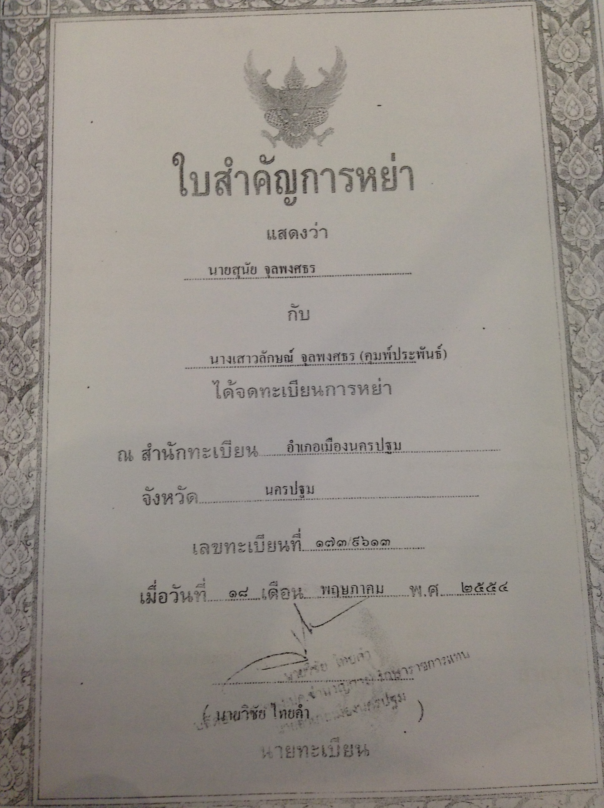 แกะรอยทรัพย์สิน“สุนัย จุลพงศธร”จดทะเบียน“หย่าเมีย”หลังพ้น ส.ส. 10 พ.ค.54 อีก 8 วัน ยื่นใหม่ 2 ส.ค.54 ที่ดิน 143 ไร่ บ้าน 3 หลัง 54 ล้านหายวับ ไม่รวมของอดีตเมีย 58 ล้าน