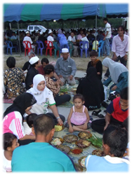 การพูดคุยเพื่อรำลึกถึงเหตุการณ์จบลงเมื่อใกล้เวลาละศีลอด อาหารถูกวางเรียงบนโต๊ะและเสื่อเพื่อรอเสียงอะซานบอกเวลาละศีลอด ชาวบ้านจาเราะและผู้แทนจากหลายองค์กรภาคประชาสังคมทยอยเข้าไปรวมตัวกันในเตนท์และนั่งบนเสื่อที่เตรียมไว้ เมื่อเสียงอะซานดังขึ้น ทุกคนกล่าวละศีลอด และหยิบอินทผลัมแตะลิ้นเป็นอันดับแรก ตามด้วยน้ำและอาหารอื่นๆ