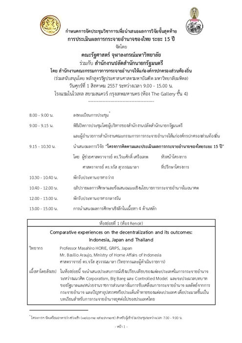 จุฬาฯ จัดประชุมวิชาการ ประเมินผลการกระจายอำนาจของไทยระยะ 15 ปี