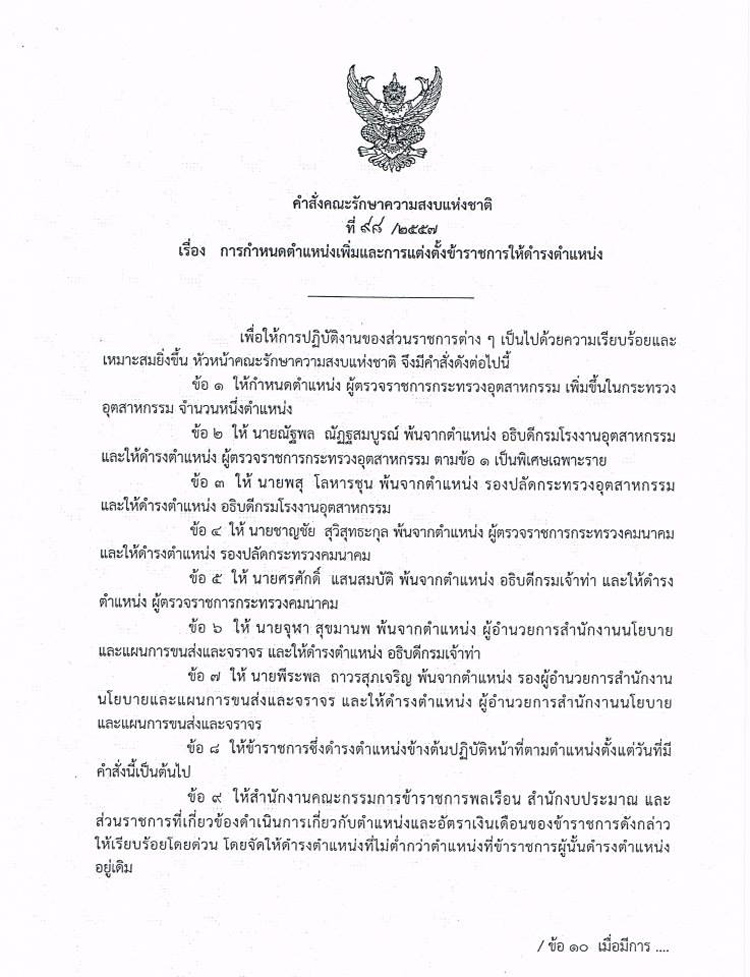 คำสั่งคณะรักษาความสงบแห่งชาติ ฉบับที่ ๙๘/๒๕๕๗