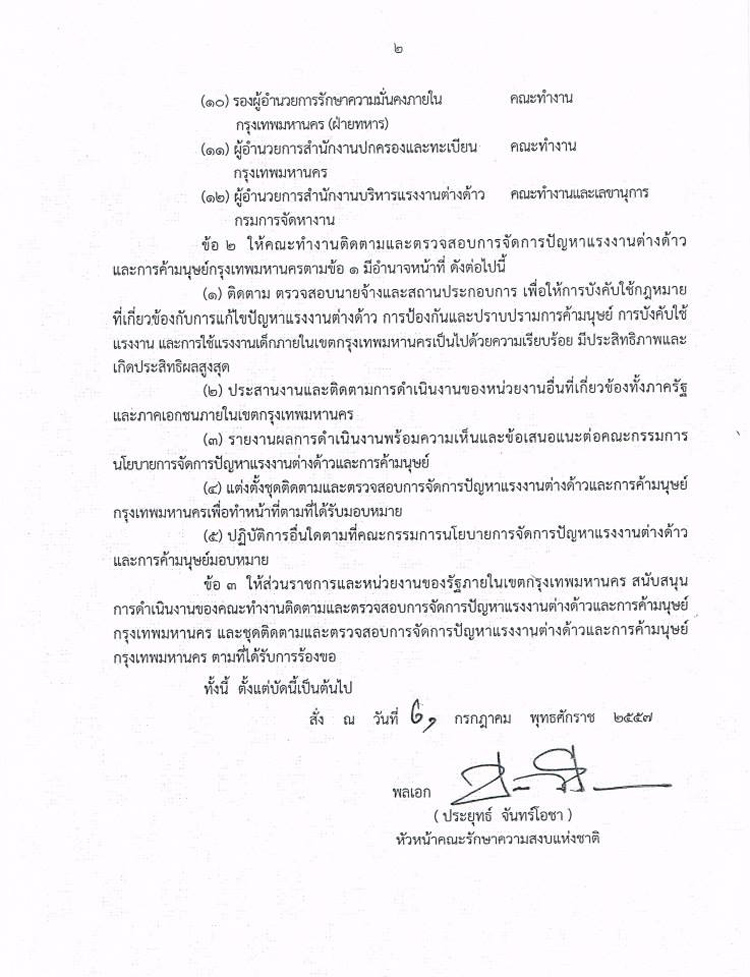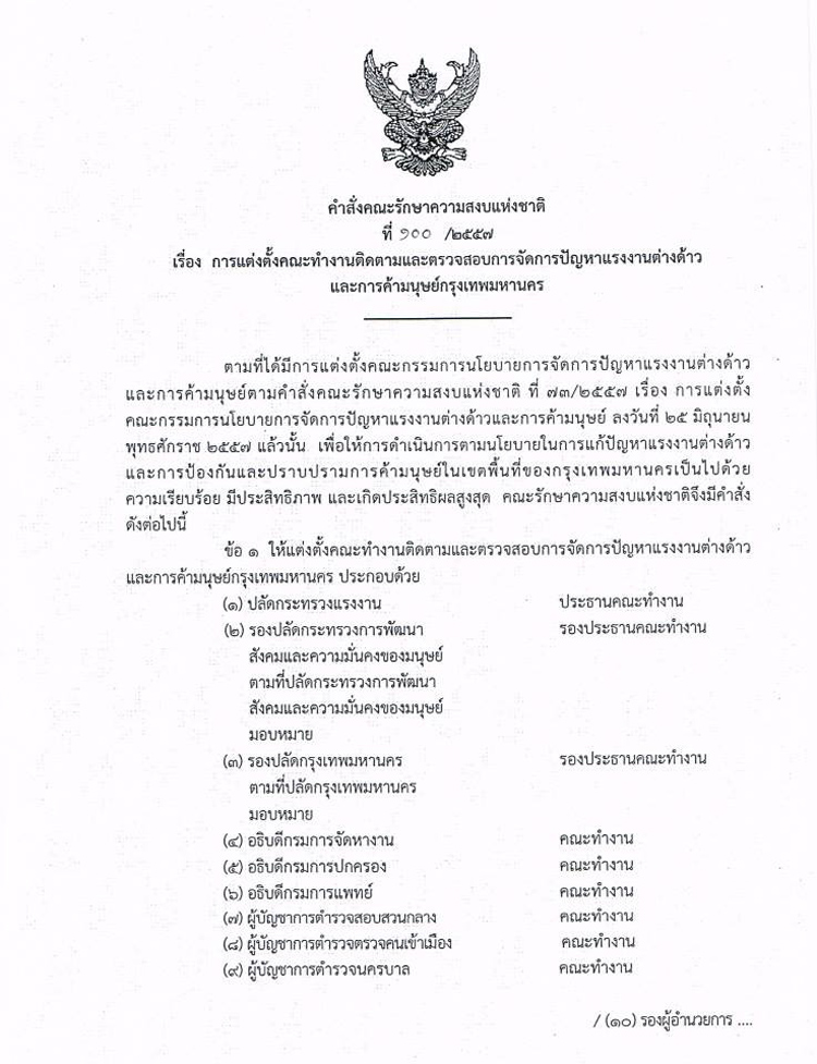 เรื่อง การแต่งตั้งคณะทำงานติดตามและตรวจสอบการจัดการปัญหาแรงงานต่างด้าว