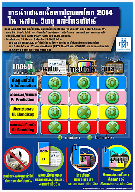 มีเดียมอนิเตอร์พบ “หนังสือพิมพ์กีฬา” มีเนื้อหา “การพนันบอลโลก 2014” มากที่สุด เสนอให้มี กลไกการกำกับดูแลสื่อ และสื่อสารการพนันกีฬา ทุกประเภท