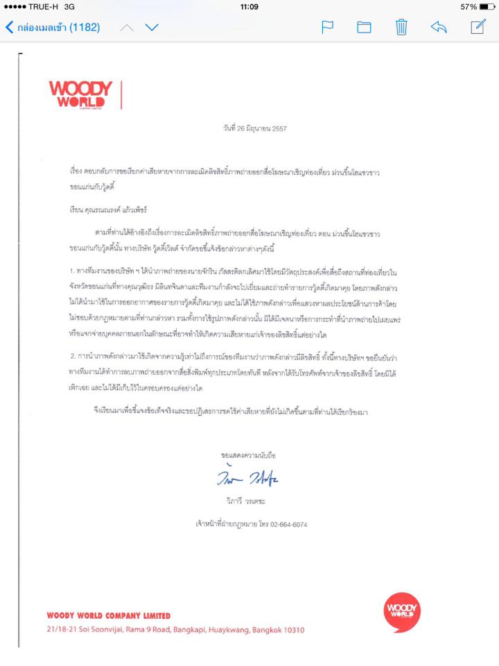 (อ่านประกอบ : "ช่างภาพดัง"ยื่นฟ้อง"วู้ดดี้" นำรูปถ่ายไปใช้โปรโมทรายการไม่ขออนุญาต)