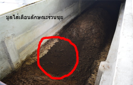 นักวิจัย กล่าวต่อว่า เมื่อเวลาผ่านไปไส้เดือนจะกินอาหารและถ่ายออกมาเป็นมูลมีลักษณะร่วนซุย และตามธรรมชาติก็จะเคลื่อนย้ายจากกากตะกอนกองเก่าไปยังกองใหม่ข้าง ๆ ใช้ระยะเวลาเคลื่อนย้ายประมาณ 1-2 สัปดาห์ ก็สามารถนำปุ๋ยไปใช้ได้ แต่หากยังมีไส้เดือนปนอยู่ให้นำไฟส่องไล่อีกครั้ง