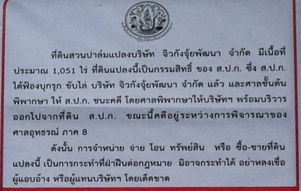 จากกรณีเมื่อวันที่ 24 กันยายน 2557 ชาวบ้านชุมชนคลองไทรพัฒนา อ.ชัยบุรี จ.สุราษฎร์ธานี ซึ่งเป็นพื้นที่เตรียมนำร่องออกโฉนดชุมชน ถูกคำสั่งโดยวาจาให้ย้ายออกจากพื้นที่ภายใน 7 วัน โดยจะครบกำหนดในวันที่ 1 ตุลาคม 2557