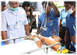 4 เจ้าหน้าที่เทศบาลตำบลคอกช้าง อ.ธารโต ที่ได้รับบาดเจ็บสาหัสจากเหตุระเบิด ถูกลำเลียงส่งโรงพยาบาลศูนย์ยะลา (ภาพทั้งหมดโดย อะหมัด รามันห์สิริวงศ์)