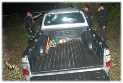 แต่ที่น่าสนใจคือในกระบะรถ มีไม้ 2 อันและผ้าถุงจำนวน 4-5 ผืน สันนิษฐานว่าคนร้ายเตรียมไว้สำหรับทำเปลสนามเพื่อหามคนเจ็บ และยังพบคีมตัดเหล็กขนาดใหญ่อีก 1 อัน