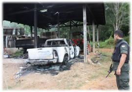 1-2 สภาพบ้านของผู้ใหญ่ฯเลาะ และซากรถกระบะที่ถูกเผา
