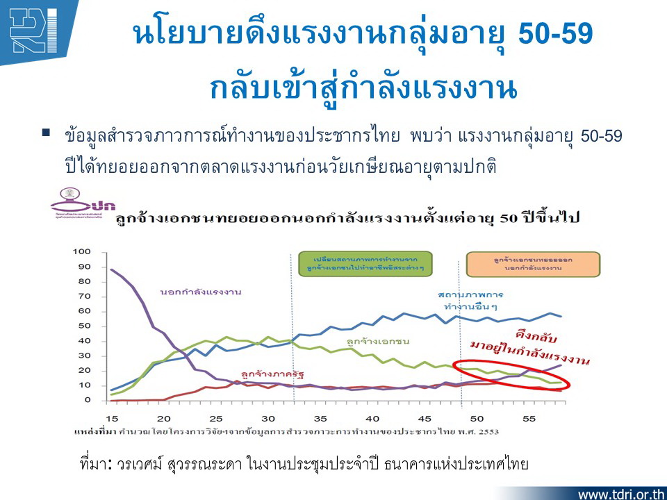 นักวิชาการทีดีอาร์ไอแนะขยายช่วงอายุทำงานของแรงงานรับมือสังคมผู้สูงวัย