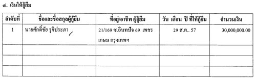 ปล่อยกู้เงินนายศักดิ์ชัย เมื่อวันที่ 29 สิงหาคม 2557 มูลค่า 30 ล้านบาท