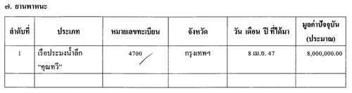 นอกจากนี้ยังครอบครองเรือประมงน้ำลึก “คุณทวี” ตั้งแต่วันที่ 8 เมษายน 2547 มูลค่า 8 ล้านบาท