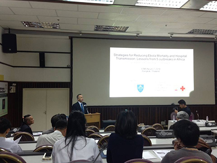 เมื่อเร็วๆ นี้ คณะแพทย์ศาสตร์ จุฬาลงกรณ์มหาวิทยาลัย จัดเสวนาวิชาการเรื่อง “ดูแลผู้ป่วยอีโบล่าอย่างไรให้ปลอดภัย?!? : ประสบการณ์ตรงจากแอฟริกา” ณ ห้องกิตเวชศักดิ์ (312/3) ชั้น 3 ตึก อปร. โรงพยาบาลจุฬาลงกรณ์ กรุงเทพ