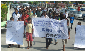 บรรยายภาพ : 1-4 บรรยากาศการชุมนุมร้องขอความเป็นธรรมจากศาลโดยกลุ่มประมงพื้นบ้านอ่าวปัตตานี (ภาพทั้งหมดโดย แวลีเมาะ ปูซู)