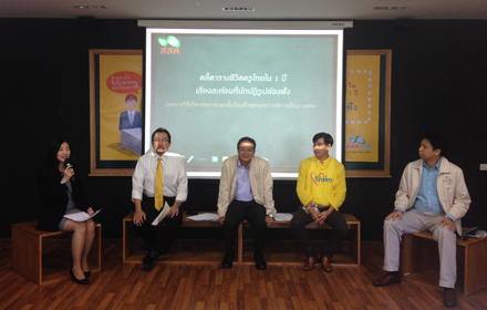 วันที่ 9 ธันวาคม 2557 สำนักงานส่งเสริมสังคมแห่งการเรียนรู้และคุณภาพเยาวชน (สสค.) จัดงานแถลงข่าว “คลี่ตารางชีวิตครูไทยใน 1 ปี เสียงสะท้อนจากครูที่นักปฏิบัติต้องฟัง” ณ อาคาร ไอบีเอ็ม ชั้น 13 สำนักงานส่งเสริมสังคมแห่งการเรียนรู้และคุณภาพเยาวชน กรุงเทพ