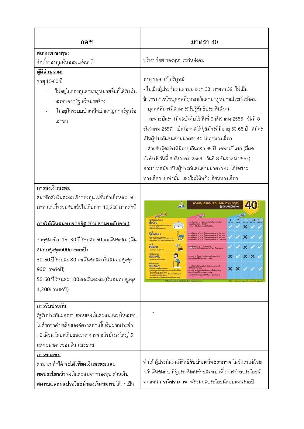 สำนักข่าวอิศรา รวบรวมรายละเอียดปลีกย่อย เพื่อให้เห็นความแตกต่าง ระหว่าง การเข้าเป็นสมาชิกประกันตนตามมาตรา 40 และกองทุนเงินออมแห่งชาติ