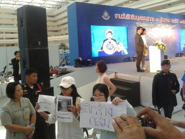 เวทีมอบรางวัลสิทธิมนุษยชน ปี 57 ป่วน ‘กลุ่มเมล็ดพริก’ บุกชู 3 นิ้ว-ป้ายเลิกจ้าง กสม. อ้างทำงานโน้มเอียง 'สอบตก' ปกป้องสิทธิขั้นพื้นฐาน 'อมรา พงศาพิชญ์' ประกาศกลางเวที ให้สบายใจ ไม่มีทางยุบ เหตุติดตลาดเเล้ว ‘กลุ่มดาวดิน’ ยันไม่เข้าร่วมเวทีความคิดเห็น ‘ประยุทธ์’