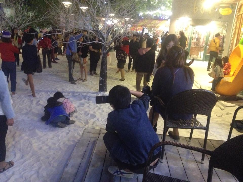 ผู้สื่อข่าวรายงานต่อว่า ภายในงานมีการสร้างบรรยากาศด้วยเครื่องพ่นฟองสบู่ เพื่อให้ดูใกล้เคียงกับหิมะมากที่สุดอยู่ด้วย