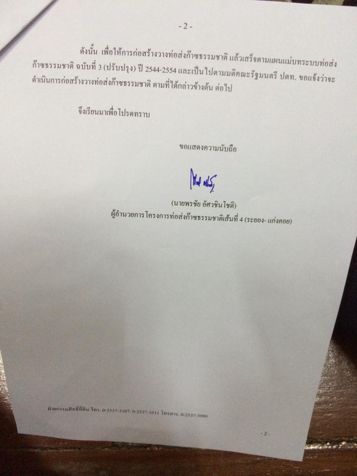 “เมื่อเราทราบจึงรีบหาข้อมูล เนื่องจากพื้นที่ตรงนี้ทางมูลนิธิจะทำเป็นพื้นที่สมุนไพร และดูแลผู้สูงอายุไม่อยากให้มีการขุดเจาะท่อก๊าซผ่านบริเวณพื้นที่แห่งนี้ และคิดว่า กฎหมายหรือพ.ร.บ.ที่เขาอ้างว่า มีอำนาจนั้นดูประหลาดและไม่รู้ว่าถูกหรือผิด แต่เมื่อรวบรวมข้อมูลหลักฐานได้ก็ทำการฟ้องศาล แต่ก็ยื่นไม่ทันในระยะเวลา 30 วัน”