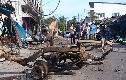 The latest incident took place in the commercial area in the Muang municipality. The apparent target was a karaoke restaurant on Na Nakhon road. Security officials however said that Na Nakhon road was not the most important commercial areas in the province and the explosion was meant to send a message to the people in the region that the perpetrators were capable of carrying out violent incidents in the hearts of any townships despite escalated security precautionary measures.