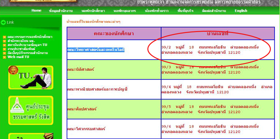 อย่างไรก็ตาม จากการตรวจสอบข้อมูลในเว็บไซต์ของมหาวิทยาลัยธรรมศาสตร์ ศูนย์รังสิต พบว่า ที่อยู่ดังกล่าวเป็นบ้านเลขที่ในของนักศึกษาคณะวิทยาศาสตร์และเทคโนโลยี?