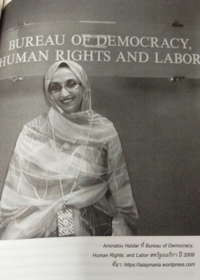 คนที่สาม ลุกขึ้นสู้กับอำนาจรัฐ ที่ปกแผ่คุกคามทำลายสิทธิของชนส่วนน้อยในแผ่นดินที่ถูกรัฐยึดครอง "Aminatou Haidar"