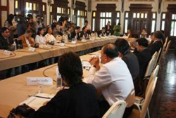 ด้านนายเนาวรัตน์ พงษ์ไพบูลย์ ศิลปินแห่งชาติ กล่าวถึงการประชุมวันนี้ยังไม่ได้มีการลงรายละเอียด แต่ก็ได้แสดงความคิดเห็นพื้นๆ คร่าวๆ มาทำความเห็นร่วมกัน เราจะเดินหน้าไป อย่างไร ไปตรงไหน ไปทางไหน ซึ่งตนได้เสนอรูปแบบของการประสานงานกับเครือข่ายชาวบ้าน รูปแบบสมัชชาประชาชน