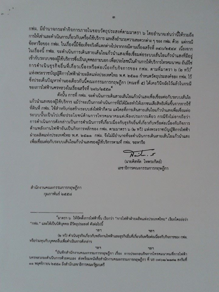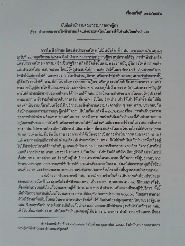 อำนาจของการไฟฟ้าฝ่ายผลิตฯ ในการให้เช่าเส้นใยเเก้วนำเเสง