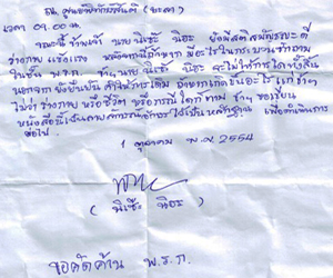 “ถ้าหากเกิดอะไรขึ้นแก่ข้าฯ ไม่ว่าร่างกายหรือชีวิตหรือกรณีใดก็ตาม ข้าฯขอเขียนหนังสือนี้เป็นลายลักษณ์อักษรไว้เป็นหลักฐาน เพื่อดำเนินการต่อไป” เป็นข้อความตอนหนึ่งของจดหมายที่ น.ส.พรเพ็ญ อ้างถึง