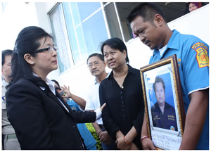 บรรยายภาพ : คุณหญิงสุดารัตน์ เกยุราพันธุ์ ประธานคณะกรรมการโครงการหนึ่งใจ...ช่วยเหลือผู้ประสบภัยและสู้ภัยพิบัติแห่งชาติ (มูลนิธิมิราเคิล ออฟ ไลฟ์) เป็นผู้แทนพระองค์ใน ทูลกระหม่อมหญิงอุบลรัตนราชกัญญา สิริวัฒนาพรรณวดี มอบทรัพย์ส่วนพระองค์และเยี่ยมผู้ประสบภัยจากเหตุระเบิดครั้งรุนแรงที่ อ.สุไหงโก-ลก จ.นราธิวาส