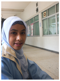 “มีเพื่อนเรียนในโครงการที่ วพบ.สุราษฎร์ธานีร่วม 200 คน เป็นมุสลิม 80 เปอร์เซ็นต์ แยกห้องเรียนห้องละ 100 คน มีผู้ชาย 30 คน เราเรียนหลักสูตรเหมือนพยาบาลปกติ ตอนปี 2 ลงชุมชน ชาวบ้านจะถามเรื่องราวทางชายแดนใต้ เขาไม่ได้คิดอะไรกับเรา เพียงแต่ไม่ค่อยเคยเห็นมุสลิม เมื่อลงพื้นที่บ่อยขึ้นก็เข้าใจกันมากขึ้น ตอนปี 3 เรียนหนักที่สุด ตอนฝึกงานเลือกมาลงที่นี่ พี่ๆ ต้อนรับและแนะนำดี เมื่อเรียนจบจึงเลือกลงที่นี่อีกเพราะใกล้บ้านด้วย”