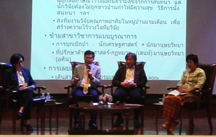 ด้าน ดร.สมพันธ์ เตชะอธิก ม.ขอนแก่น มองว่า เหตุที่มีผู้อยากทำวิจัยในพื้นที่ชนบทน้อย ปัจจัยหนึ่งมาจากระบบที่ไม่เอื้ออำนวย ดังนั้นการพัฒนานักวิชาการรุ่นใหม่ต้องมีนักวิจัยอาวุโสเป็นพี่เลี้ยงคอยให้คำปรึกษา มิฉะนั้น งานวิจัยคงหนีไม่พ้นการทำแบบสอบถาม โฟกัสกรุ๊ปเพียงครั้งหนึ่งเท่านั้น โดยขาดการค้นคว้าข้อมูล