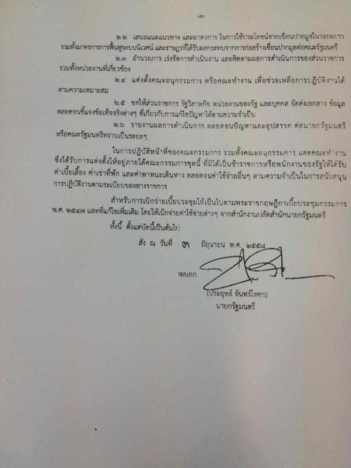 ผู้สื่อข่าวรายงานว่า เมื่อวันที่ 3 มิถุนายน 2558 พล.อ.ประยุทธ์ จันทร์โอชา นายกรัฐมนตรี ได้ลงนามในคำสั่งสำนักนายกรัฐมนตรี ที่ 131/2558 เรื่อง ‘แต่งตั้งคณะกรรมการอำนวยการเพื่อแก้ไขปัญหาเขื่อนปากมูล’ มีรายละเอียด ดังนี้