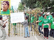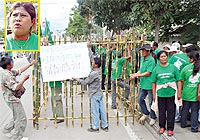 อย่างไรก็ตาม หลังเจ้าหน้าที่นำตัวนางจินตนาเข้าสู่เรือนจำ ชาวบ้านเสื้อเขียวทั้งหมดเดินเท้าไปรวมตัวที่บริเวณถนนประจวบคีรีขันธ์ขาเข้าตัวเมือง ด้านหน้าเรือนจำจังหวัดประจวบ คีรีขันธ์ ห่างจากศาลจังหวัด 400 เมตร ก่อนจะปิดการจราจรบนถนนเส้นทางดังกล่าว ด้วยการนำไม้ไผ่มาทำกรงขังขนาดกว้าง 2 เมตรยาว 2 เมตร สูง 2 เมตร พร้อมเขียนข้อความเรียกร้องเพื่อขอความเป็นธรรม เพื่อให้เกียรติกับประธานกลุ่มอนุรักษ์ฯในฐานะนักต่อสู้เพื่อสิ่งแวดล้อมที่เสียสละอุทิศตัวเพื่อผลประโยชน์ของชาวบ้านในท้องถิ่น และแกนนำบางส่วนได้ใช้รถติดเครื่องขยายเสียงปราศรัยโจมตีกลุ่มทุนอุตสาหกรรมขนาดใหญ่ โดยระบุว่า "การทำกิจกรรมของชาวบ้านกลุ่มเสื้อเขียวเป็นการปกป้องสิทธิชุมชน" จากนั้นได้มีการนำเต็นท์มากางบนถนน นำเครื่องครัว ข้าวสารอาหารแห้งมากักตุนไว้จำนวนมากเพื่อเป็นเสบียงในการต่อสู้ ขณะเดียวกันแกนนำได้ประกาศจะปักหลักชุมนุมต่อเนื่องเป็นระยะเวลา 4 เดือน เพื่อเยียวยาวิกฤตทางจิตใจของชาวบ้านเสื้อเขียวหลังจากนางจินตนาติดคุก โดยจะมีกิจกรรมเสวนาของทีมนักวิชาการด้านสิ่งแวดล้อม พร้อมนำวงดนตรีเพลงเพื่อชีวิตมาขับกล่อมเพื่อให้กำลังใจกับผู้ชุมนุมอย่างต่อเนื่องทุกวัน โดยมีตำรวจทั้งในและนอกเครื่องแบบเดินทางมารักษาความสงบเรียบร้อยและอำนวยความสะดวกในการใช้เส้นทางดังกล่าว
