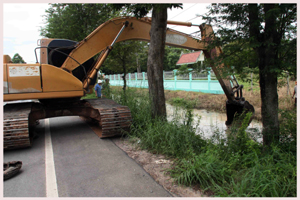 1 เจ้าหน้าที่กำลังนำรถแบ็คโฮขุดลอกคลองในพื้นที่ อ.โคกโพธิ์ จ.ปัตตานี เพื่อเตรียมรับน้ำที่อาจท่วมเพราะฝนตกหนักในเร็ววันนี้
