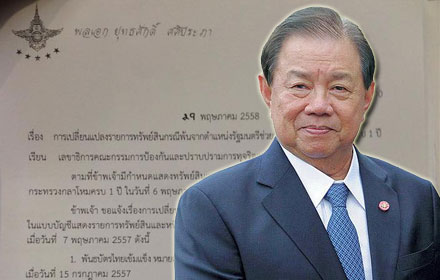 เมื่อเทียบกับช่วงพ้นจากตำแหน่ง รมช.กลาโหม เมื่อวันที่ 7 พ.ค. 2557 แจ้งว่า มีทรัพย์สิน 306,670,351 บาท ไม่มีหนี้สิน