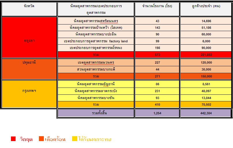 * หมายเหตุ : รวบรวมข้อมูลโดยศูนย์ข้อมูลข่าวสารปฏิรูป ข้อมูลจากการนิคมอุตสาหกรรมแห่งประเทศไทย ณ วันที่ 12 ตุลาคม 2554