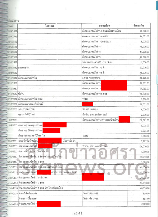 วันที่ 11/10/2551 ใส่ซองค่าตอบแทนนักข่าว (2ซอง ซองละ2,000 บาท) เป็นเงินจำนวน 4,000 บาท