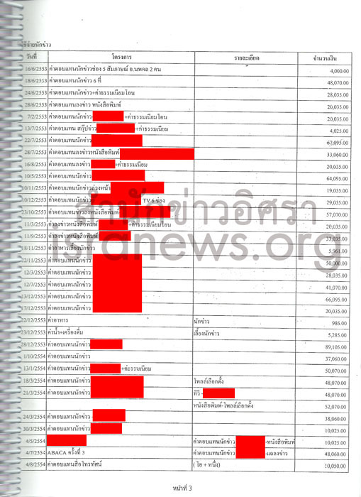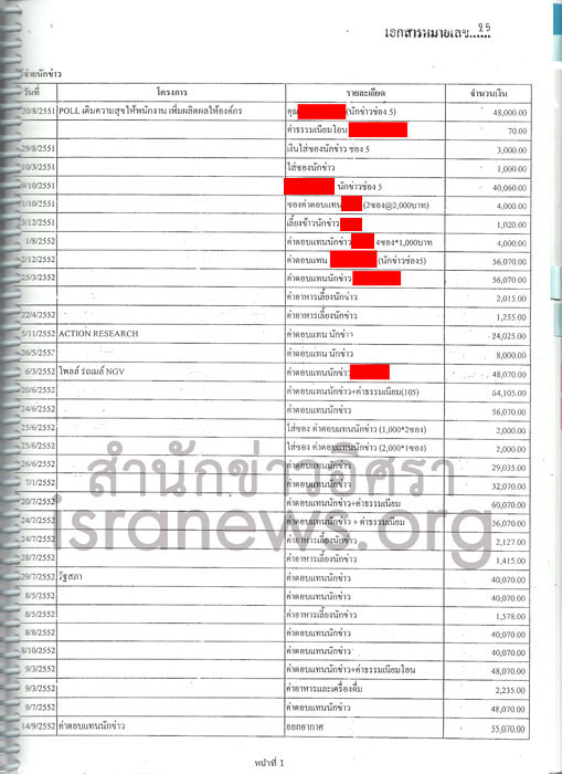 วันที่ 23/11/2552 จ่ายค่าตอบแทนนักข่าว หนังสือพิมพ์ (ขอปิดชื่อ) เป็นเงินจำนวน 28,035 บาท