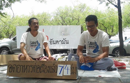 วันที่ 13 กรกฎาคม 2558 เครือข่ายปกป้องอันดามันจากถ่านหิน ยื่นหนังสือถึงพล.อ.ประยุทธ์ จันทร์โอชา นายกรัฐมนตรี และหัวหน้าคณะรักษาความสงบแห่งชาติ (คสช.) ณ หน้ากระทรวงการท่องเที่ยวและกีฬา ภายหลังสมาชิกเครือข่ายฯ 2 คน คือ นายประสิทธิชัย หนูนวล และนายอัครเดช ฉากจินดา อดอาหารตั้งแต่วันที่ 10 กรกฎาคม 2558 จนถึงปัจจุบัน ซึ่งมีจุดประสงค์คัดค้านการก่อสร้างโรงไฟฟ้าถ่านหิน จ.กระบี่ ทั้งนี้ มีนายอิทธิพล มีเจริญ ผอ.สำนักบริหารกลาง กระทรวงการท่องเที่ยวฯ เป็นผู้แทนรับมอบ