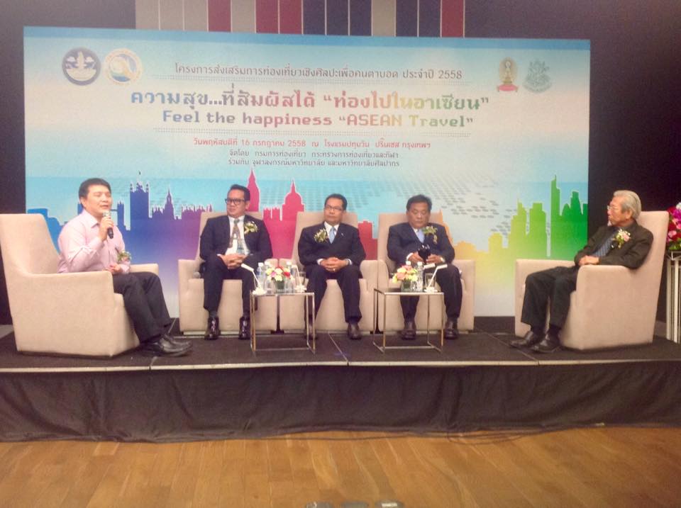 วันที่ 16 กรกฎาคม 2558 กรมการท่องเที่ยว กระทรวงการท่องเที่ยวและกีฬา ร่วมกับจุฬาลงกรณ์มหาวิทยาลัยและมหาวิทยาลัยศิลปากร จัดแถลงข่าวเปิดตัวโครงการประกวดศิลปะเพื่อคนตาบอด หัวข้อ ความสุข...ที่สัมผัสได้ ‘ท่องไปในอาเซียน’ Feel the happiness ‘ASAEN Travel’ เพื่อเทิดพระเกียรติสมเด็จพระนางเจ้าสิริกิติ์ พระบรมราชินีนาถ เนื่องในวโรกาสพระชนมายุ 83 พรรษา และเปิดโอกาสให้ผู้พิการทางสายตาเข้าถึงโอกาสด้านต่าง ๆ โดยเฉพาะการท่องเที่ยว ณ โรงแรมปทุมวัน ปริ๊นเซส